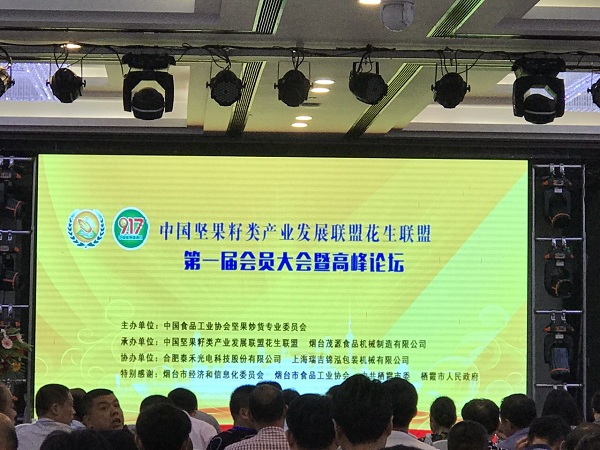 7月5日,由中國食品工業(yè)協(xié)會(huì)堅(jiān)果炒貨委員會(huì)主辦,中國堅(jiān)果籽類產(chǎn)業(yè)發(fā)展聯(lián)盟花生聯(lián)盟以及煙臺(tái)茂源食品機(jī)械制造有限公司共同承辦的“中國堅(jiān)果籽類產(chǎn)業(yè)發(fā)展聯(lián)盟花生聯(lián)盟頭一屆會(huì)員大會(huì)暨高峰論壇”主題活動(dòng)在山東省棲霞市煙臺(tái)寶華開元名都大酒店順利召開。