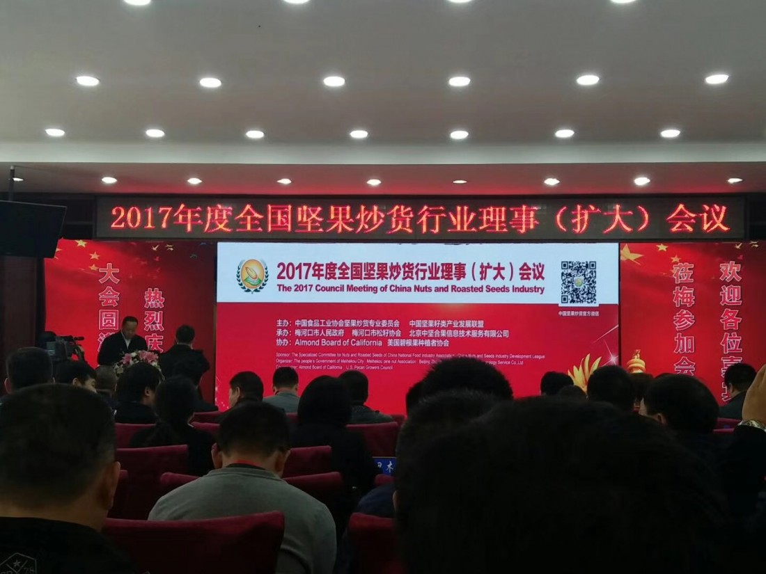 由中國食品工業(yè)協(xié)會堅果炒貨專業(yè)委員會主辦的“2017年度全國堅果炒貨行業(yè)理事會(擴(kuò)大)會議”,于2017年10月23日—25日在吉林梅河口市召開。出席此次會議的代表有:協(xié)會執(zhí)行會長、副會長、全體理事單位;梅河口市政府、廣西龍州縣政府、云南臨滄縣政府有關(guān)部門領(lǐng)導(dǎo)以及吉林省有關(guān)市縣的領(lǐng)導(dǎo);出席的有關(guān)部門還有國家食藥監(jiān)總局三司、吉林省食品安全質(zhì)量檢驗(yàn)檢測所,以及美國、俄羅斯、越南、巴基斯坦等國家堅果協(xié)會、企業(yè)代表,共計500余人參加了會議。