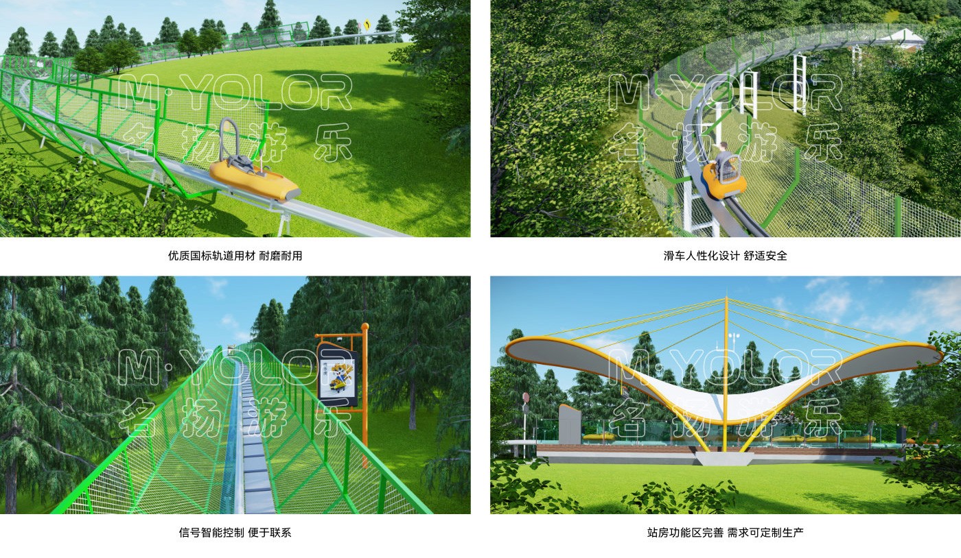 單軌滑道是一種健身與娛樂于一體,是世界上新興的娛樂活動項目,老少皆宜,其樂無窮;由滑車固定于軌道上,配有剎車手柄,游客可自主控制速度;可做自動提升系統(tǒng),減少人工成本;運行不受天氣影響;在彎道處絕對安全;很少的土方量;滑車帶有安全帶,游人更安全。帶給人飛的速度,跳的視覺,在高山峽谷中馳騁穿躍。